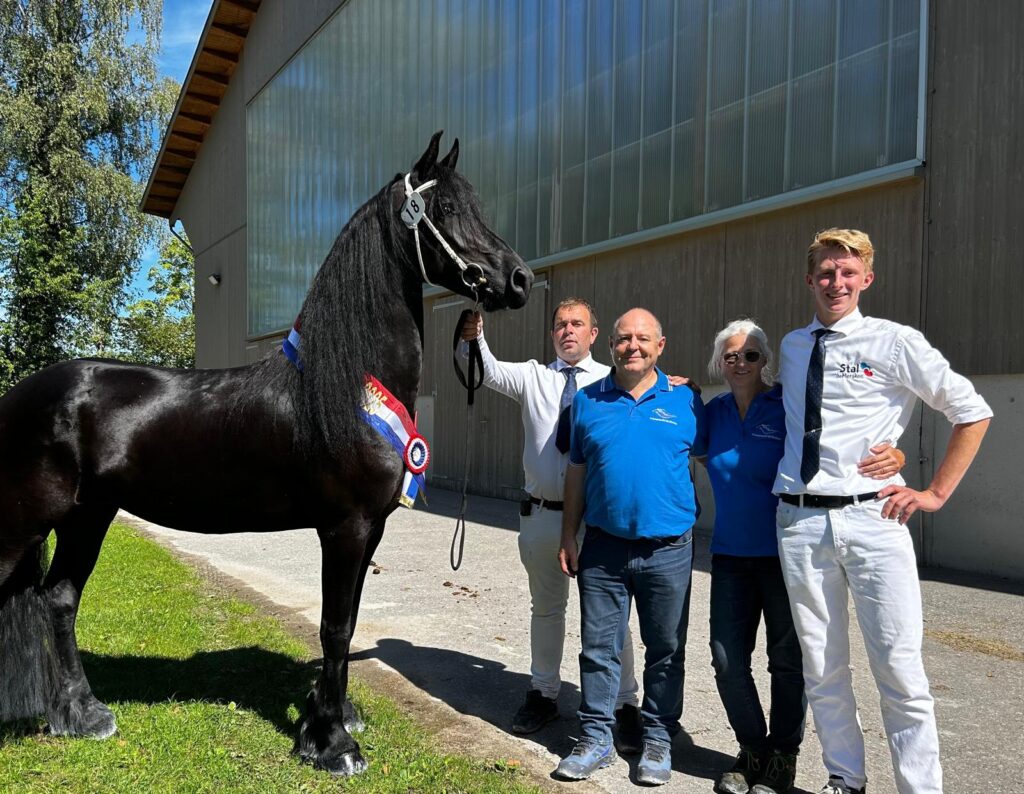 - Belle J.S. Ster (Jouwe 485 x Lolke 371) met de familie Constant (Foto: Ingrid Truijens)