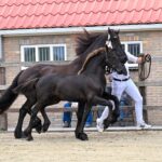 Bij de merrieveulens verschenen er 17 veulens in de baan, twee kregen een eerste premie: Doete fan d’ald Loop (Hilbert 529 x Jehannes 484) en Elouisa van der Vaart (Hildwin 528 x Bartele 472).