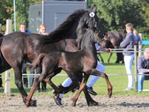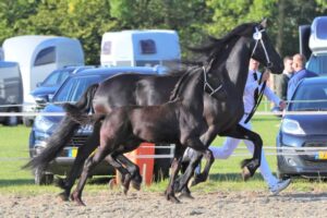Bij de veulens werden drie eerste premies toegekend. Bij de hengstveulens kregen de lichtvoetig dravende Milan van de Boezem (Tiede 501 x Tjalbert 46) en de zeer rastypische Nier van de Terp (Fonger 478 x Epke 484) een oranje lint. Bij de merrieveulens werd de super luxe Mirhte T. (Maurits 437 x Beart 411) beloond met een eerste premie.