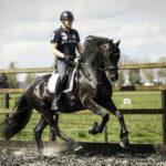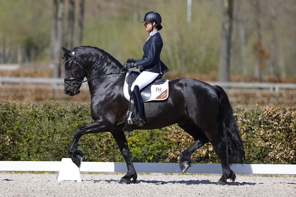 Michaela kocht Thomas – zijn moeder is een halfzus van Alwin 469 – eigenlijk om hem zelf in de dressuur te rijden. Het bleek echter dat ze dat lichamelijk niet kon volhouden. ‘Toen heeft Roel hem overgepakt. Dat is nog maar een half jaar geleden.’ De ruiter, met een eigen stal in Hollandscheveld, heeft een klik met de ruin. ‘Hij luistert naar het paard wat ie nodig heeft’, vertelt Michaela die er trots op is dat de combinatie al in de finale van de regiokampioenschappen in Drenthe meereed en nu ook naar de finale van het NK Friese paarden mogen. ‘Thomas staat er top bij. Ik ben heel blij dat ik op deze manier van hem kan genieten en hij toch in de sport alle kansen krijgt.’