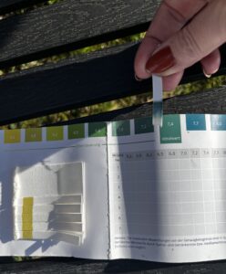 De afgelopen jaren maakt Christine als ondersteuning ook gebruik van een pH-tester. ‘Dat doen best veel fokkers en is bij fokstallen en dierenartsen een bekende manier bij het nauwkeuriger voorspellen van het moment van de geboorte. Er is uitgebreid studie naar gedaan, onder andere door TIHO in Hannover’, geeft Christien aan. ‘De pH-test is behoorlijk betrouwbaar bij het voorspellen van de geboorten van het veulen, dat scheelt veel slapeloze nachten.’
