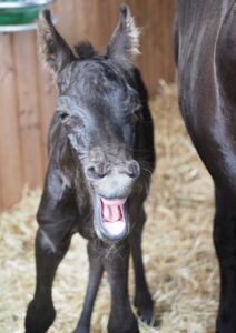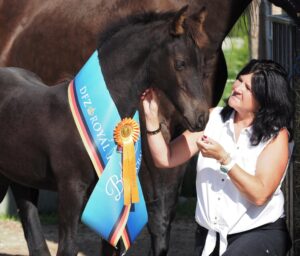 ‘We willen bij elke bevalling erbij zijn’, geeft Christine aan. ‘Als het nodig is kunnen we hulp verlenen. Echter de drachtduur kan variëren van 314 tot 365 dagen, zo weten we uit ervaring.’ De fokster van de ‘van S’ fokstal kan zelf insemineren, heeft al zo’n 35 jaar en geeft cursussen in het fokken, opfokken en trainen van paarden. ‘Ik weet nog wel dat ik in het begin van onze fokkerij nachtenlang in de stal aan het waken was. Ik sliep dan zelfs in de stal en dat vaak meerdere weken achter elkaar als de merries aanstalten maakte om te gaan veulenen.’ Ondertussen is het voor de fokster een stuk gemakkelijker geworden. ‘Met een camera en een ‘birth alarm’ is het toch meer ontspannen geworden en kan je vanaf de bank in huis de merrie in de gaten houden.’