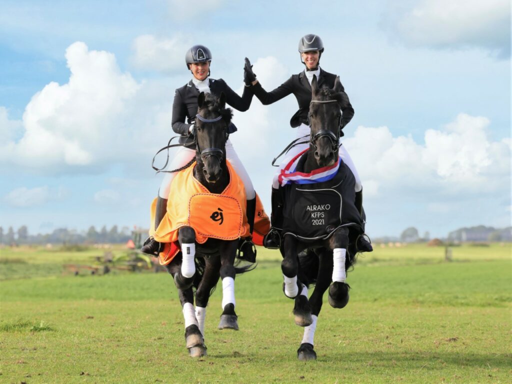 Het is niet dat Wendy nu niks meer te rijden heeft; bij Stal Okkema heeft ze een rits kwaliteitsvolle paarden tot haar beschikking. Zo traint ze Stal Okkema’s Rudmer (Michiel 442) op ZZ Licht-niveau, en start ze Topspeed Friesians Kaspar (Orlov x Fries) in de PSG. En voor de toekomst staat haar vorig jaar geboren Eos-nakomeling uit een Michiel 442-merrie voor haar klaar.