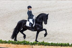 De mensport met Friese paarden wint enorm aan populariteit. Dat snappen we heel goed, want naast het fraaie uiterlijk en het fijne karakter scoren de Friese paarden hoog bij het mennen. Dat werd dit jaar weer eens duidelijk bij de Hippiade waar één merrie maar liefst twee mentitels mee naar huis nam: Klaske van de Egberdina Hoeve. Met haar eigenaar Gerbrich Elgersma werd ze kampioen in de B. Haar man Nico Calis haalde het kampioenslint binnen in de klasse Z. Een prachtige dubbelslag. Daarbij was Klaske ook één van de vier paarden in het viertal van de Egberdina Hoeve dat Hippiade kampioen werd in de klasse M dressuur. Klaske is daarmee een voorbeeld van de veelzijdigheid van het Friese paard.