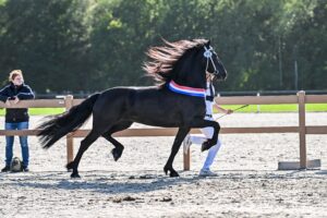 Met haar Preferentschap dit jaar heeft Juwiel H. fan Lutke Peinjum (bijna) alle predicaten verdiend die er maar te behalen zijn voor een merrie bij het KFPS. Model, Sport Elite, Preferent, Prestatie en ze haalde een AA voor haar aanlegtest. Alleen fenomeen Annichje fan Bokkum haalde met een AAA nog net ietsje meer, maar Juwiel zette daarnaast ook nog een goedgekeurde stamboekhengst op de wereld: Menso 542. De veertienjarige Juwiel bracht 11 nakomelingen en werd in 2022 ook kampioen merries voor de sjees. Sport en fokkerij kon Juwiel naadloos in elkaar over laten gaan, maar de focus voor de merrie ligt nu helemaal op de fokkerij. En op haar nominatie natuurlijk…..