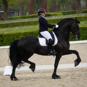 Vandaag kwamen de 7-jarige paarden in de baan in Ermelo, voor hun proef en aansluitende training voor de selectie van het WK Jonge Dressuurpaarden. Twee ‘Friese’ combinaties presenteerden zich: Bennie van Es met Tizian fan Ass (Epke 474) en Britt Muis met Tomas fan ’t Wegje (Maurits 437).