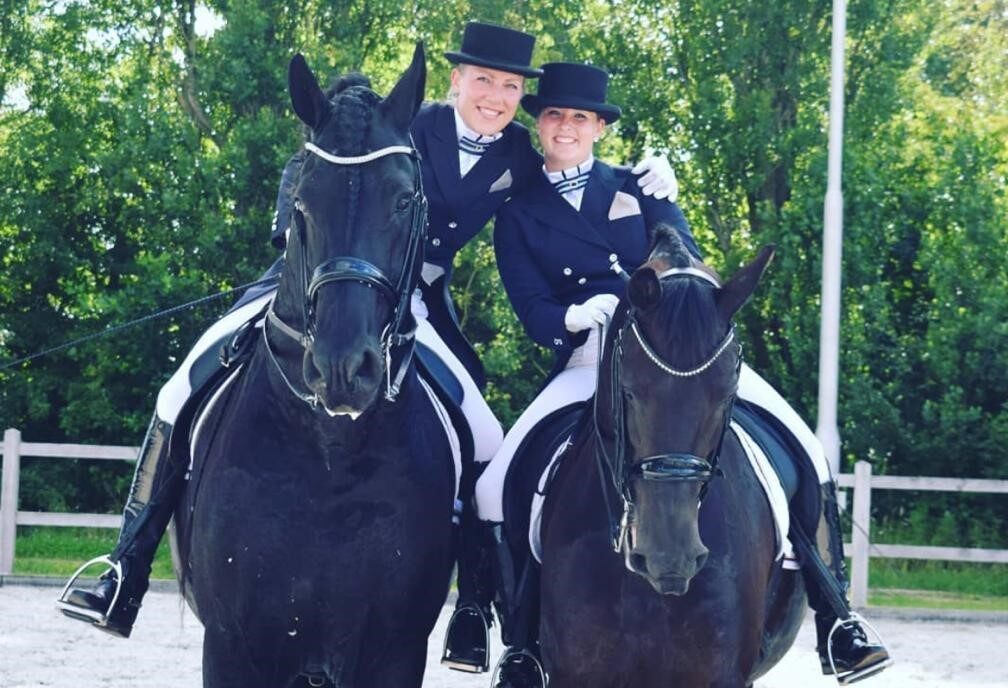 Met hun paarden Thijs (Fabe 348) en Imke ( Brandus 345) verheugden Mellanie Meijer en Anna Griet Pompstra zich enorm op het rijden van hun pas-de-deux ‘The Stallion and his Lady’. Jammer dat het niet doorgaat, maar hopelijk gaat het in 2022 door en zijn de dames dan van de partij.